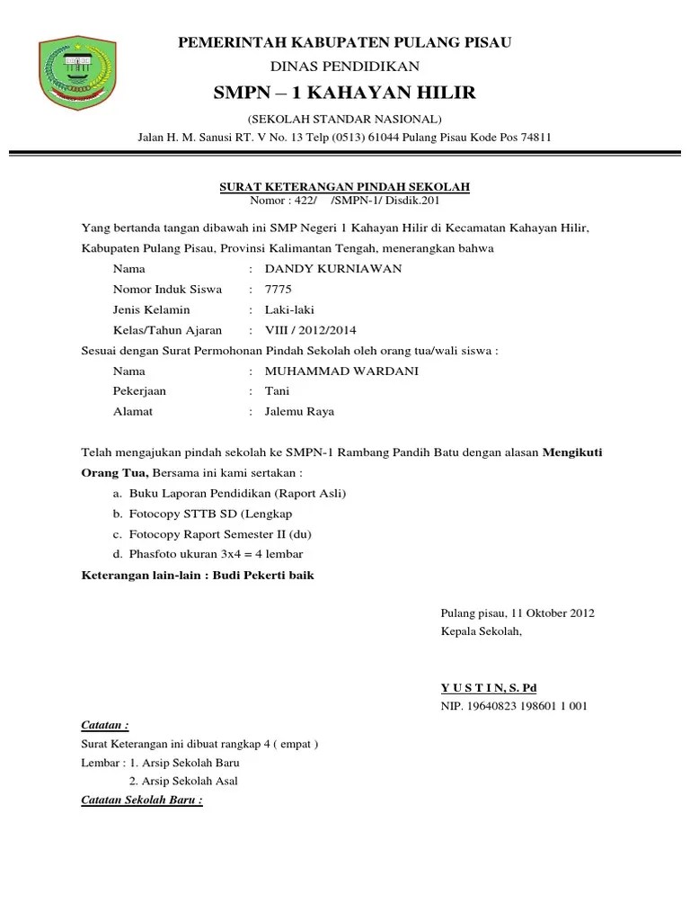 Untuk itulah surat permohonan pindah sekolah sebaiknya ditulis dan ditanda tangani oleh orang tua siswa yang bersangkutan surat pindah sekolah sd. Mengajukan permohanan pindah belajar untuk siswa tersebut untuk siswa tersebut di atas ke sd negri plipiran kec.burno kab.puworejo dengan alasan menikuti .